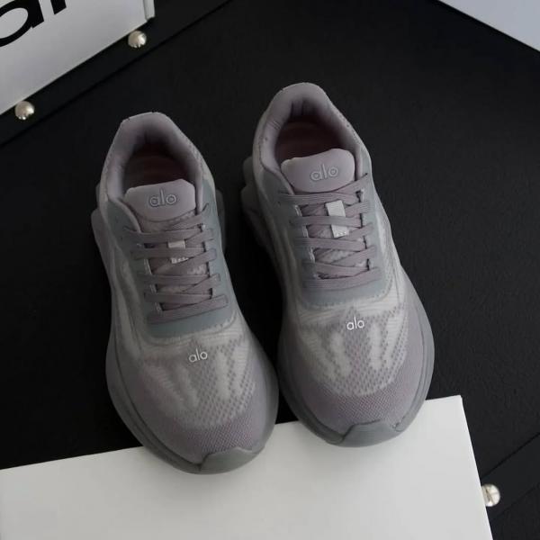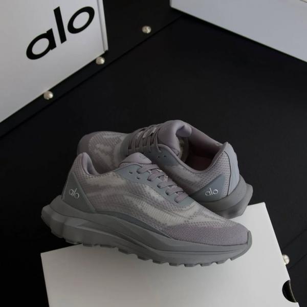 Alo Yoga Alo Runner unisex shoe in grey mesh.