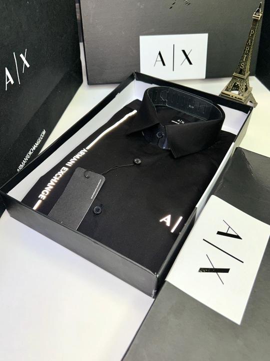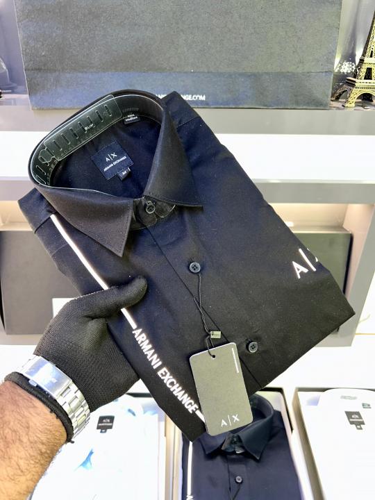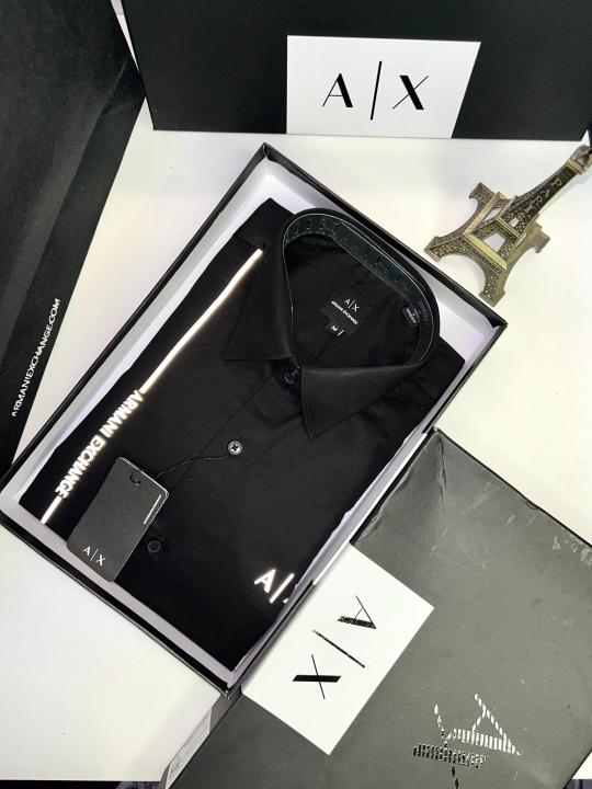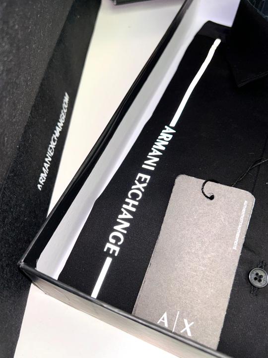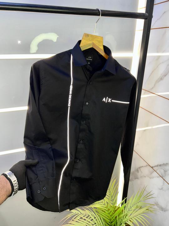 Home Shirts Arman_i Exchange Reflective Black Premium Shirt With Brand Box Packing And Carry Bag F653-BL