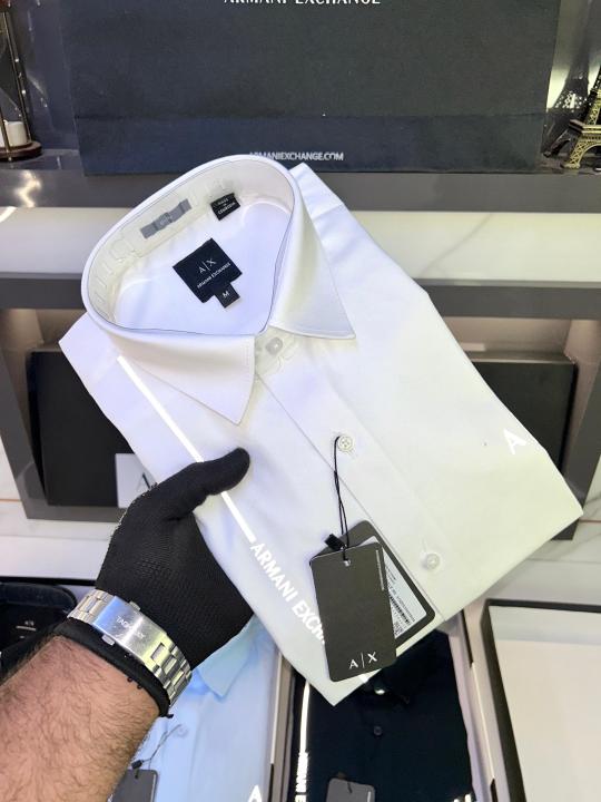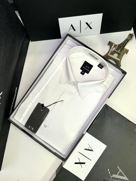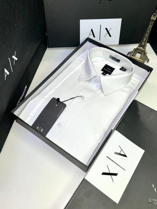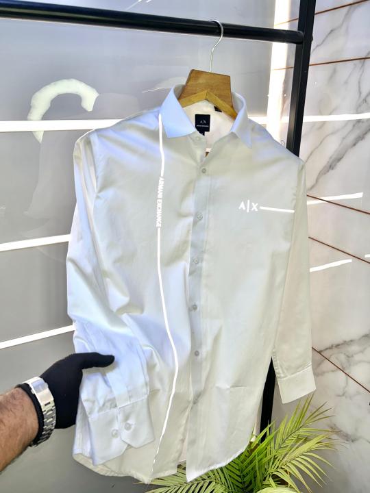 Home Shirts Arman_i Exchange Reflective White Premium Shirt With Brand Box Packing And Carry Bag F653-WH