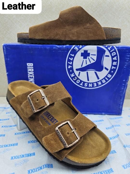 Birkenstock Arizona Brown Leather with sole branding