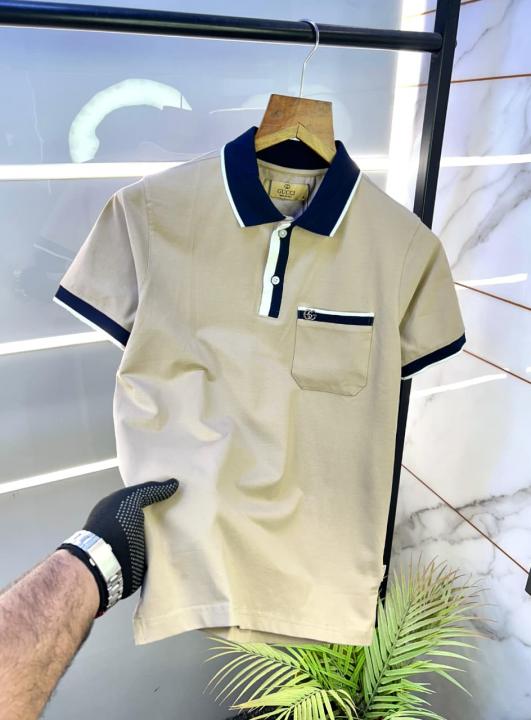 Home T-Shirts Gucc i Beige Premium Collar Neck Polo T-shirt F2952-BE