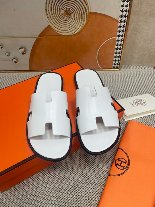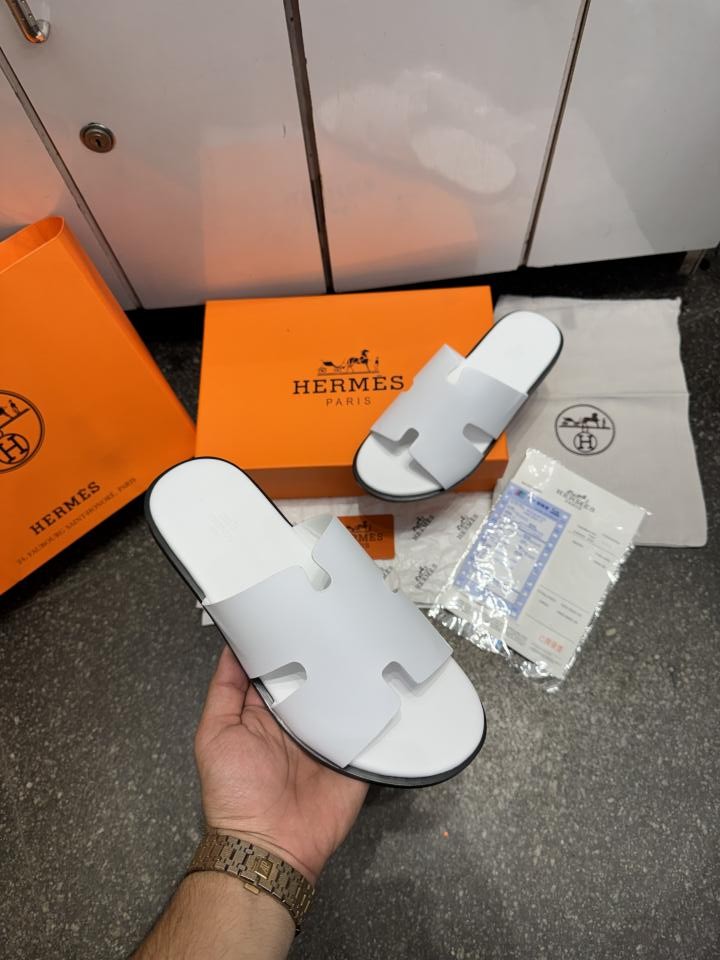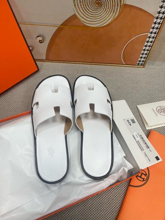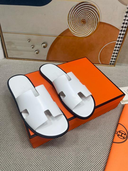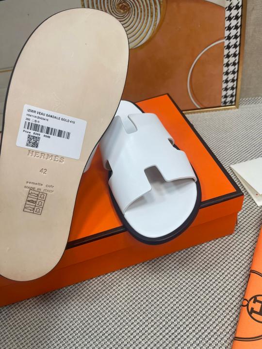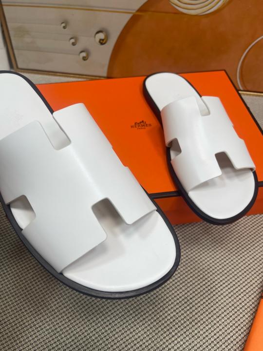 Herme.s Izmir Italian Calf Leather Premium Sandal SlideWhite