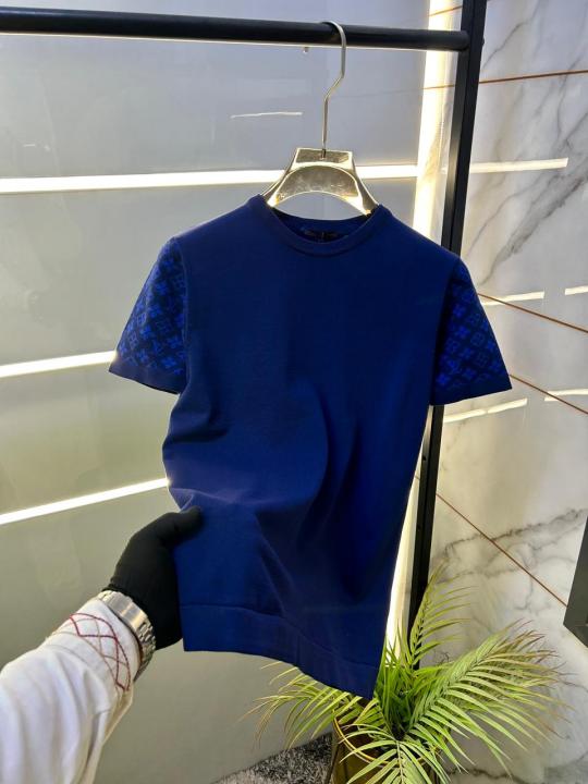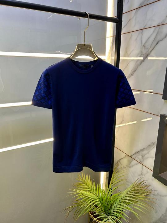 Home T-Shirts Loui s Vuitton Imported Blue knitted Super Premium Round Neck T-shirt F3516-BU