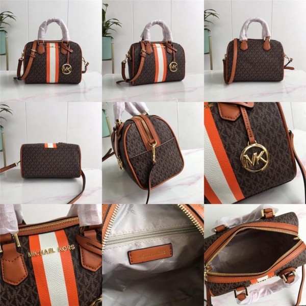 Michael_Kors_MK Boston Sling Hand Bag With Dust Bag & Shoulder Strap (Brown Strip - 323)