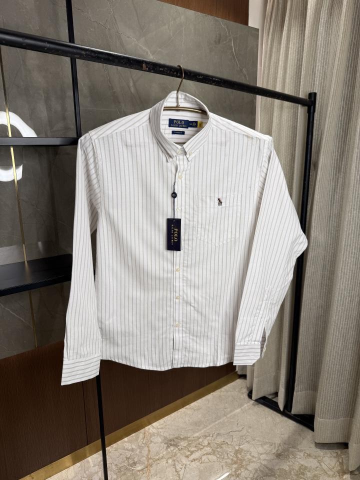 RALPH LAURE_N POLO BROWN WHITE PREMIUM OXFORD SHIRT