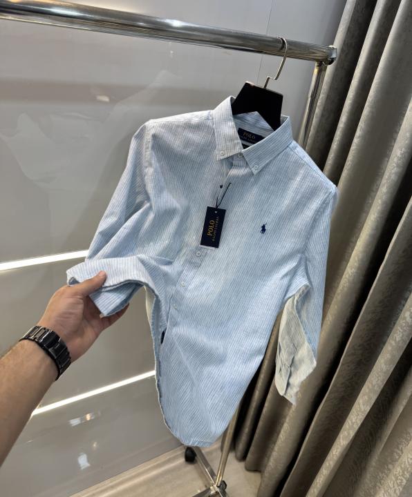 Home Shirts Ralph Lauren Aqua Blue Stripes Premium Linen Shirt
