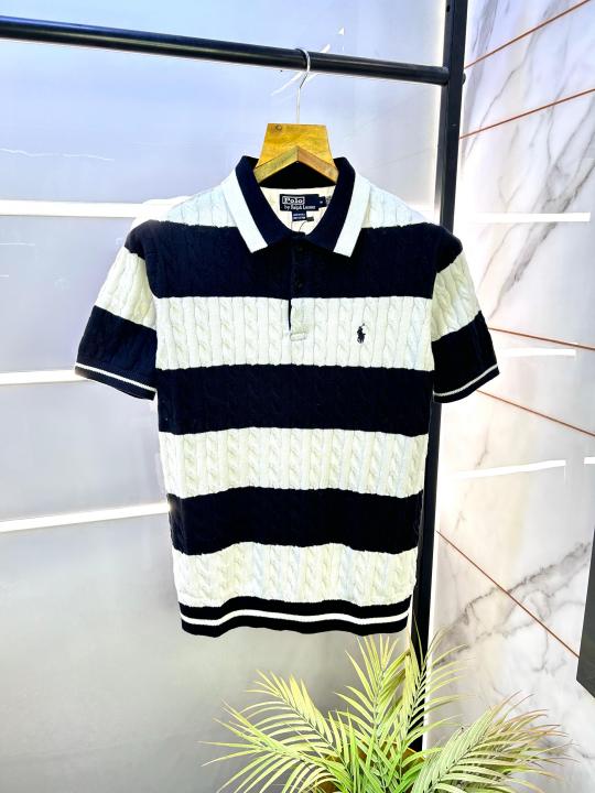 Ralph_Lauren Black Imported Knitted Polo Collar Neck T-shirt F2805-BL