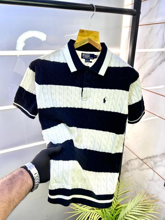 Home T-Shirts Ralph_Lauren Black Imported Knitted Polo Collar Neck T-shirt F2805-BL