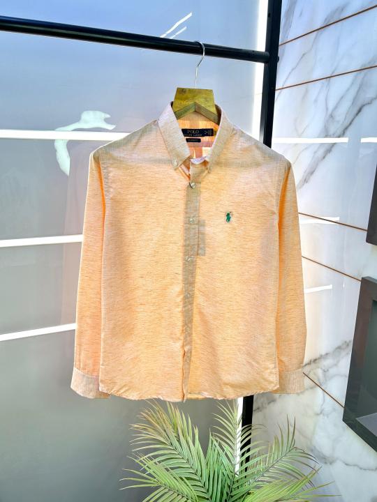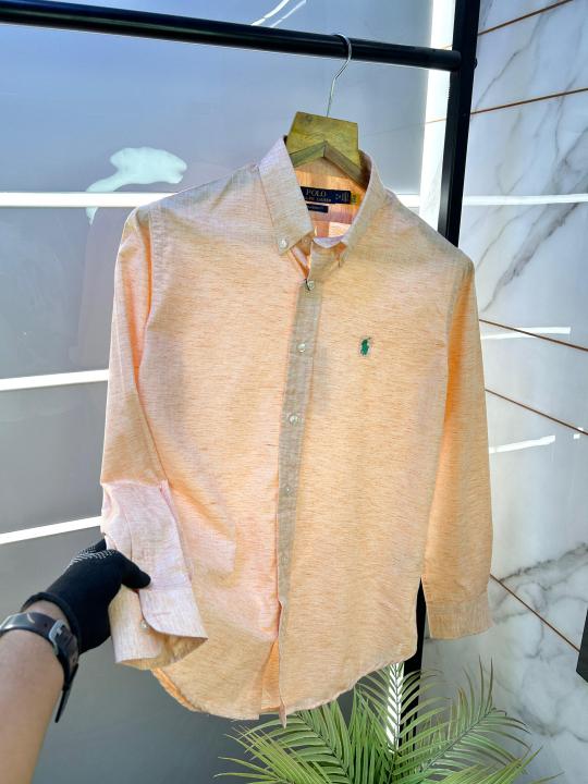 Ralph_Lauren Linen Light Brown Embroidery Logo Super Premium Shirt F2608-BR