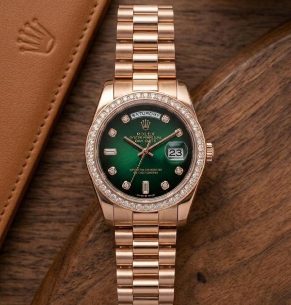 Role_x Oyster Perpetual Day Date Diamond Copper-Green