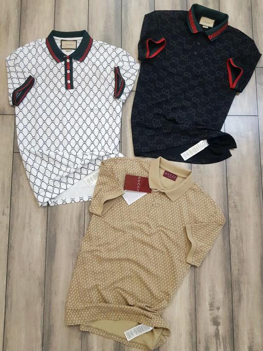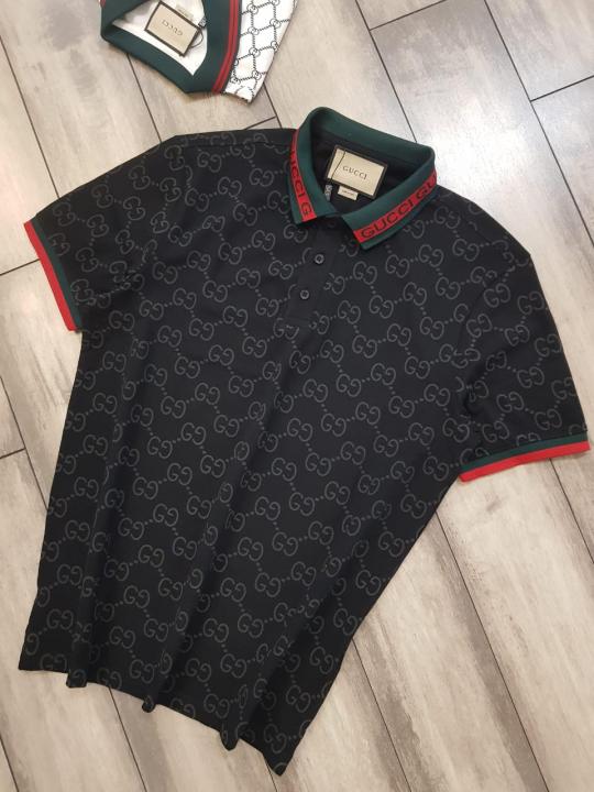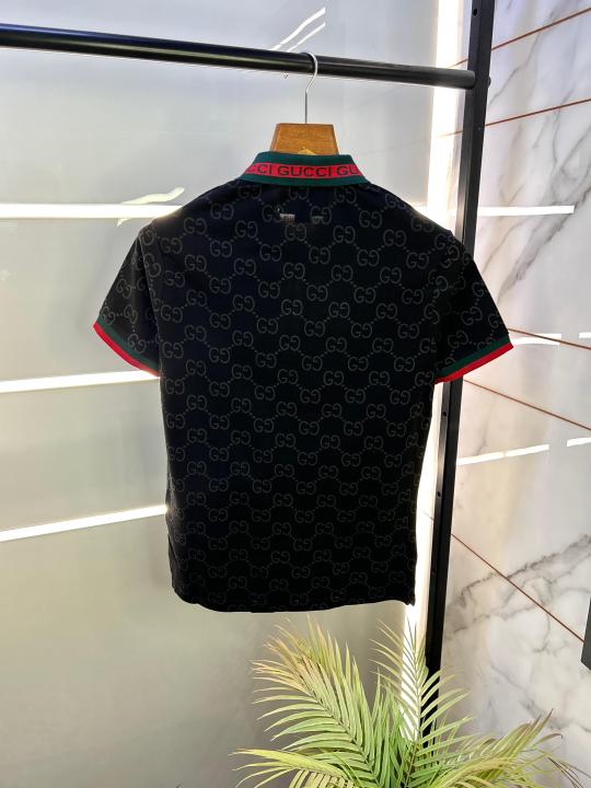 Home T-Shirts Sale Gucc i Imported Black Monogram Polo Neck Premium Collar T-shirt F2485-BL