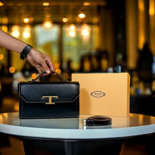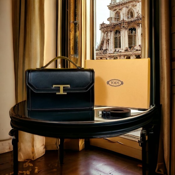 TODS T Timeless Top Handle Bag With OG Box & Dust Bag (Black - 600)