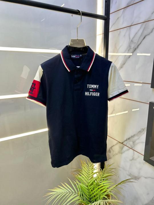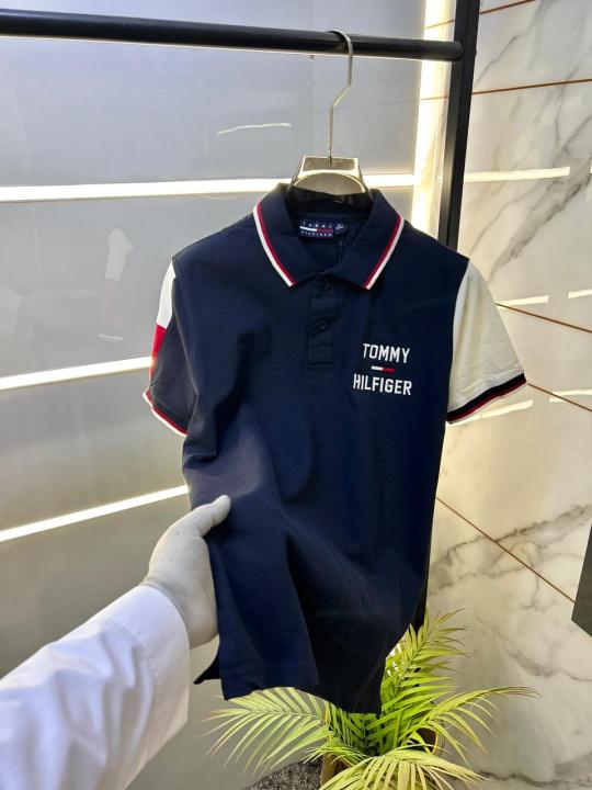 Home T-Shirts Tommy_Hilfiger Navy Polo Premium Collar Neck T-shirt F2858-NY